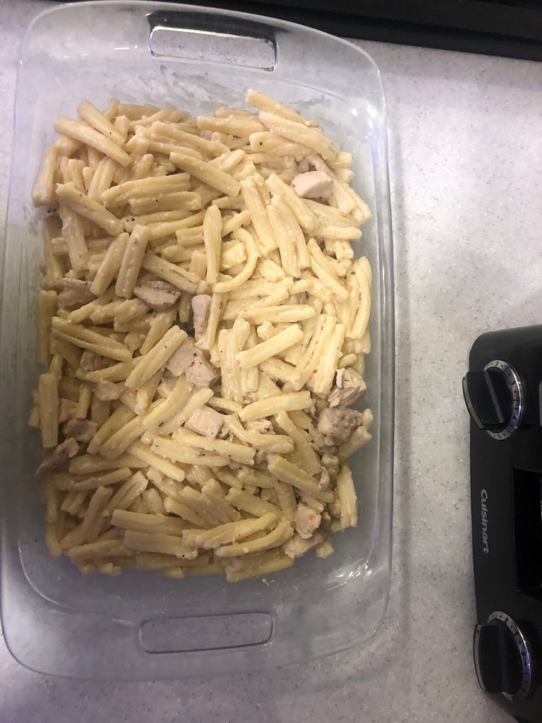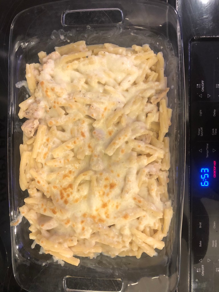 The first meal I learned how to make from my grandma is a delicious Fettuccine Alfredo with the perfect amount of chicken. A beneficial factor about this dish is the proportions. There is no limit on how much or how little pasta you can make the only difference is the time it takes. This meal is perfect for an evening in or a large group of people. My family and I can eat this dish without leaving leftovers, and the same goes for when I cook it for my roommates and I. Enjoy!